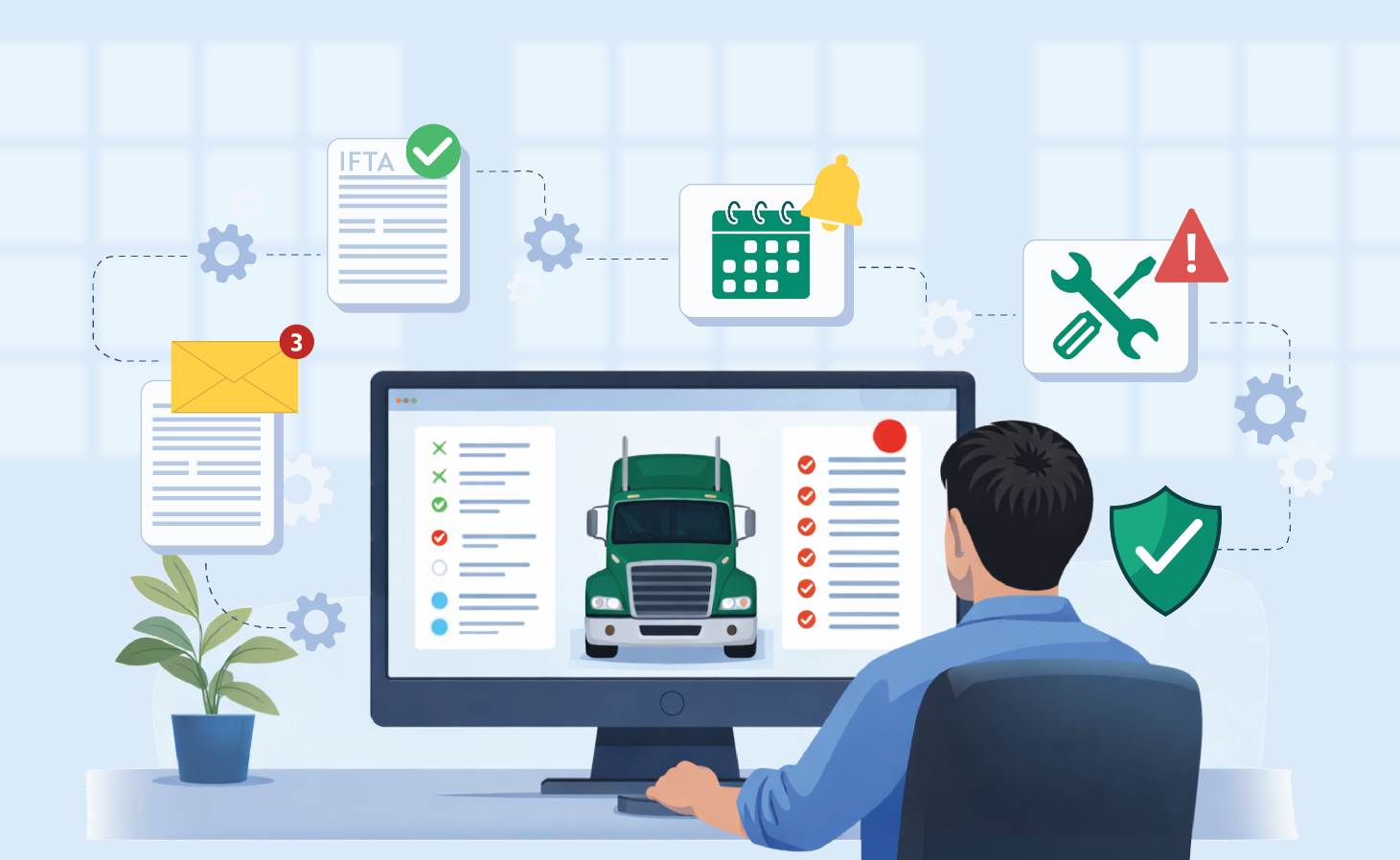 Automating the important things so you can focus on your workflows. IFTA mileage and fuel data, annual maintenance reminders, fleet IRP renewals, just to name a few.