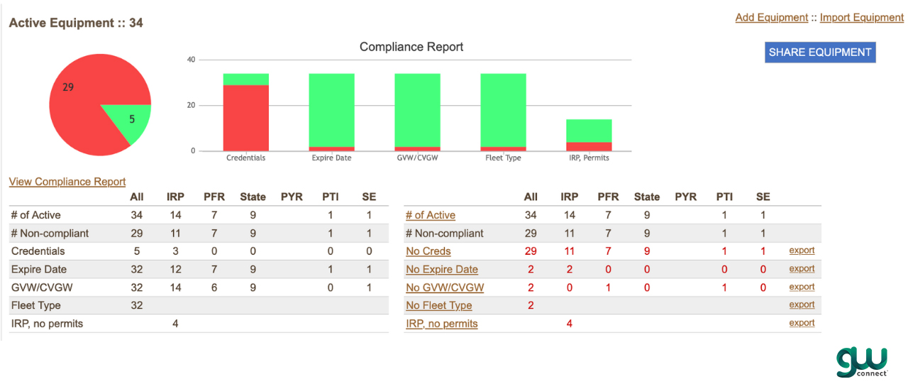 GW Connect is not your typical fleet management system. Many system may highlight missing documents, but don’t possess workflows to assist with IRP renewals, DMV documents, and vehicle operating health.